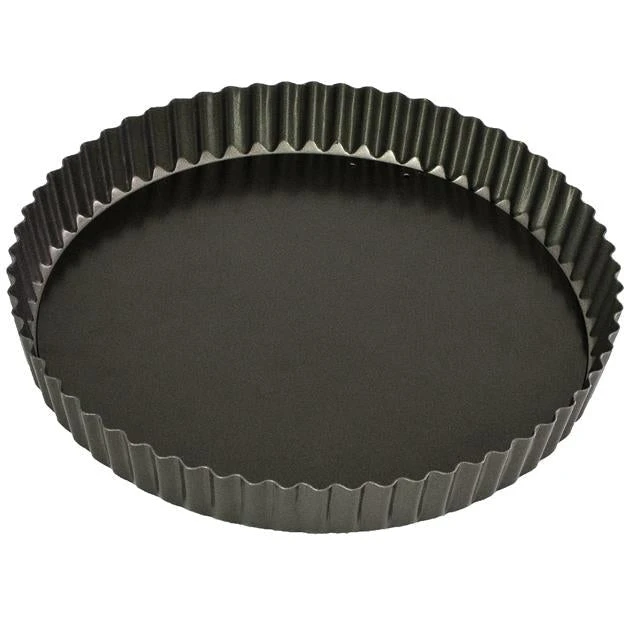 Get your quiche off to a great start with the Bakemaster Loose Base Round Quiche Pan – 25cm x 3.5cm. The heavy duty carbon steel body makes even cooking of your pastyr simple and the loose base design help remove the pastry without damaging the crust.