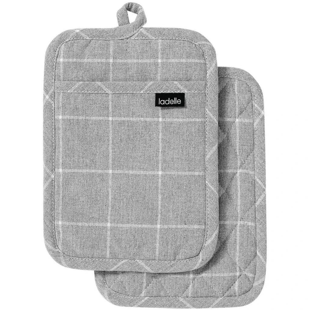 The Ladelle Eco Check Grey 2pk Pot Holder are perfect for those who wish to use environmentally friendly products in their kitchen! Made out of recycled cotton and polyester that would have been disposed off had those materials not been repurposed, this pot holder is perfect for keepig your hands safe from burns when handling hot cookware!