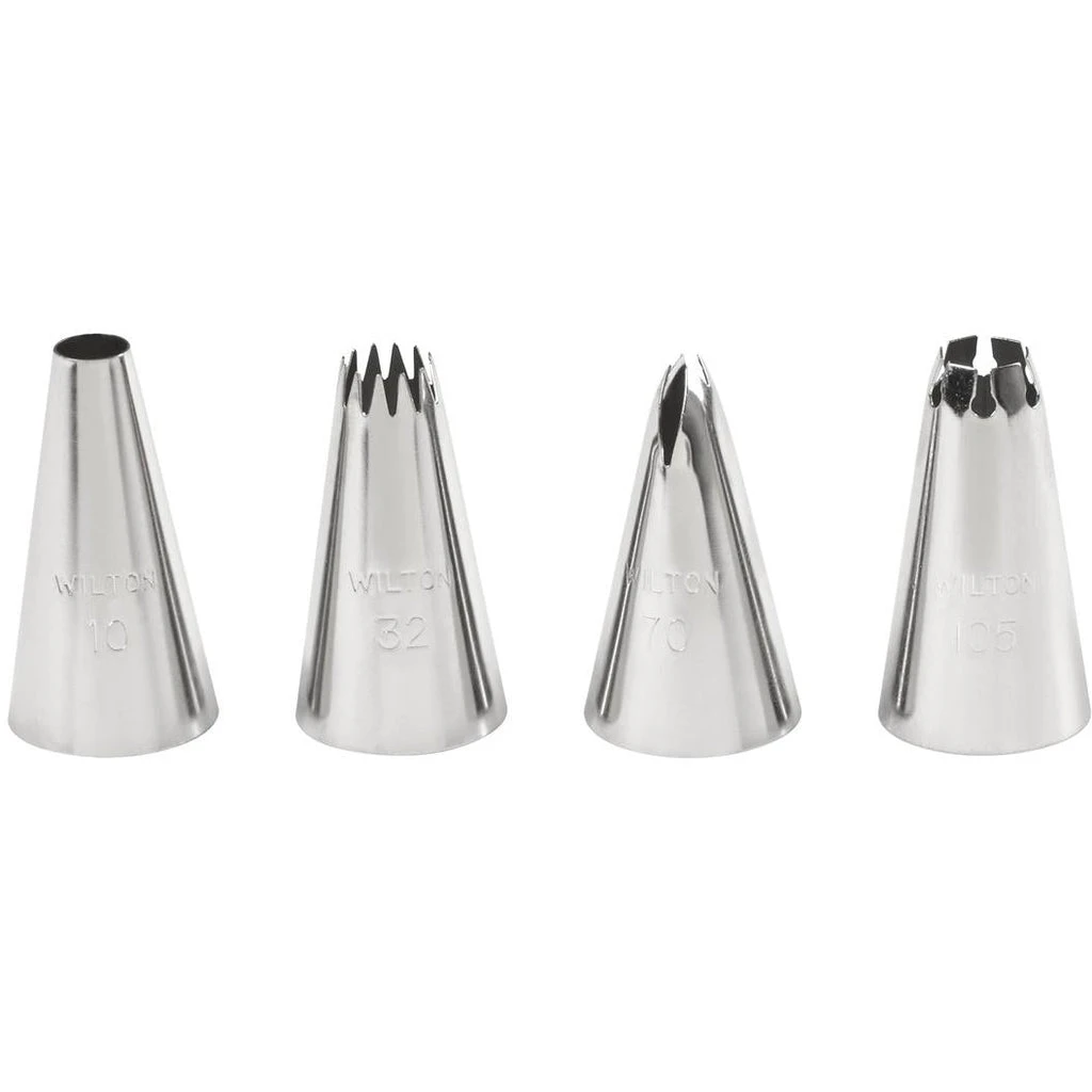 Get creating at home with the Wilton Borders Tip Set – 4pce. This set of 4 decorating tips includes the #10, #32, #70 and #105 decorating tips, ideal for creating 4 popular types of borders on your cakes.