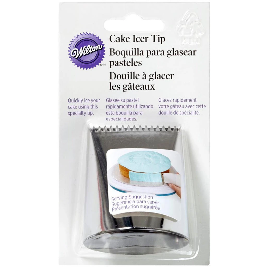 There is no easier way to ice an entire cake with buttercream frosting than by using the Wilton Cake Icer Tip – #789. The cake Icer Tip has a large flat surface so you can pipe the frosting on to a wide surface area very quickly. Once the cake is roughly covered, smooth out the icing with a Wilton spatula.